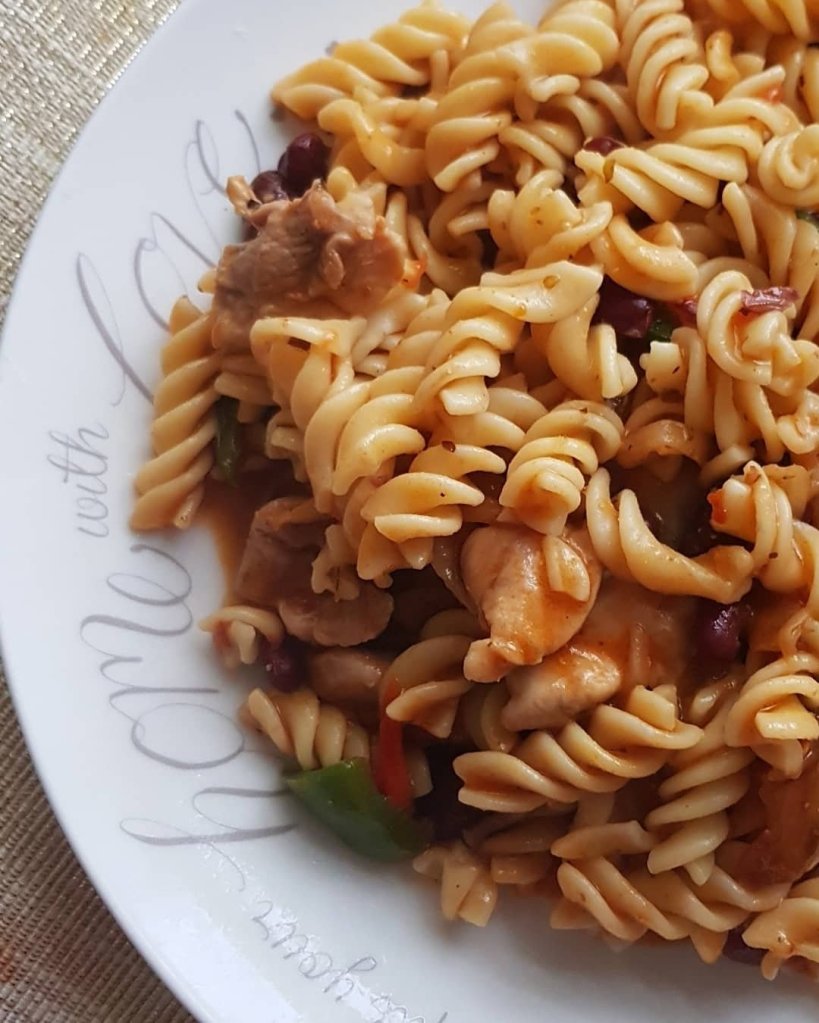 2 thoughts on “Sweet & Sour Kidney Beans, Pepper & Chicken Pasta Recipe